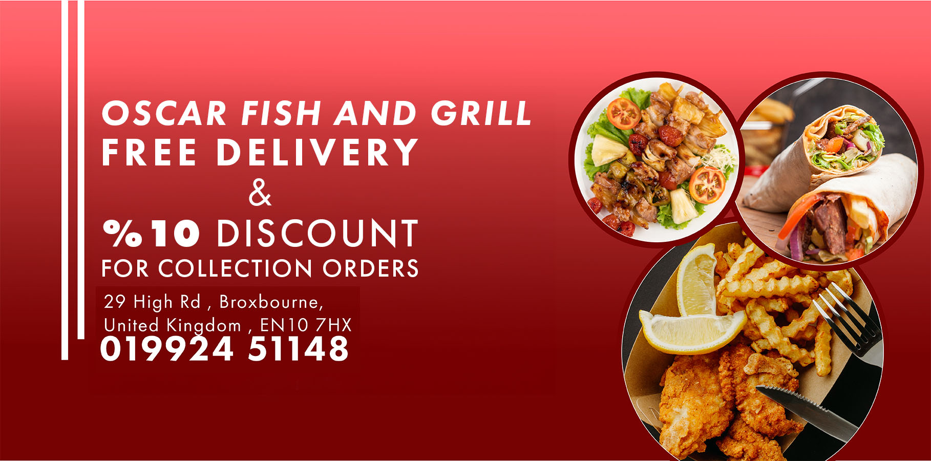 Welcome to the official website Oscar Fish and Grill! On our website you will find our complete takeaway menu, always up to date with the latest prices and choices, including our special offer meal deals. Our website is easy to order from for collection or delivery! Simply choose your items and add them to your basket, then checkout!